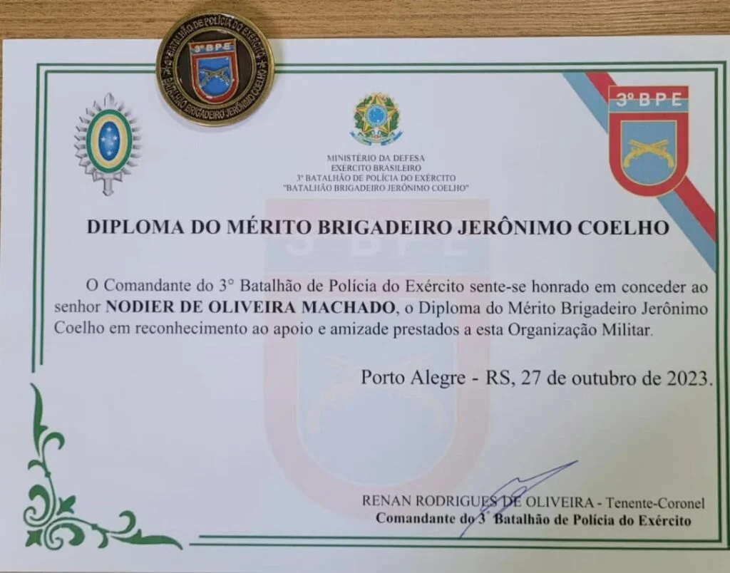 O soldado Nodier de Oliveira Machado, que atua no Canil do CRPO Litoral, em Osório, foi homenageado pelo 3º Batalhão de Polícia do Exército com o Diploma do Mérito Brigadeiro Jerônimo Coelho, em solenidade na Capital, na sexta-feira (27/10).