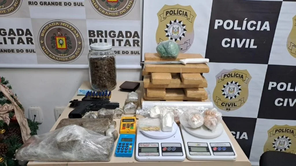 O trabalho policial resultou na apreensão de uma pistola de calibre 9 milímetros, um carregador para esta arma e 33 munições para esse calibre, aproximadamente 13 quilos de maconha, 700 gramas de cocaína, 312 pedras de crack, 267 gramas de skank e um grama de ecstasy; balanças de precisão, máquinas de cartões de crédito, celulares, dinheiro e materiais para embalar drogas.