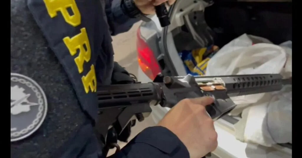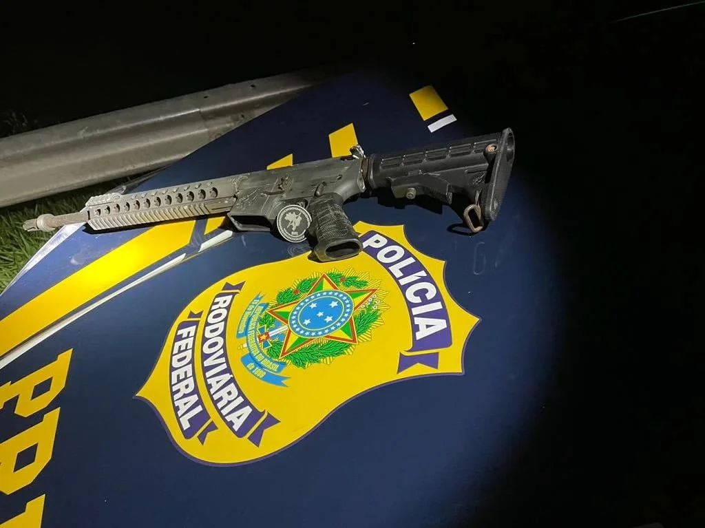 Na noite desta quinta-feira (16), a Polícia Rodoviária Federal prendeu um homem com um fuzil calibre .223 REM.