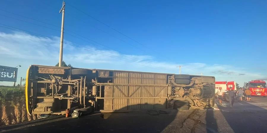 Um ônibus tombou no final da tarde deste domingo, 24, na BR 158 em Santana do Livramento e deixou 14 pessoas feridas.