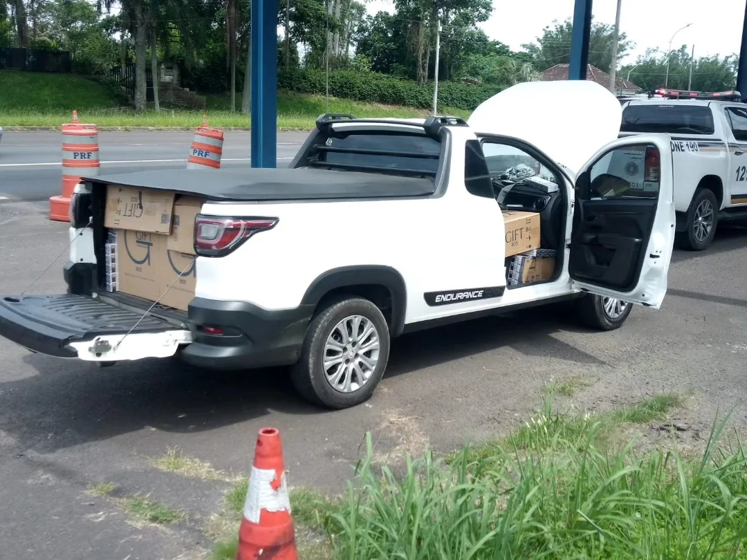 Na tarde desta quinta-feira(14) na BR101 em Osório policiais rodoviários federais prenderam um homem transportando cigarros contrabandeados em uma caminhonete Fiat/Strada.