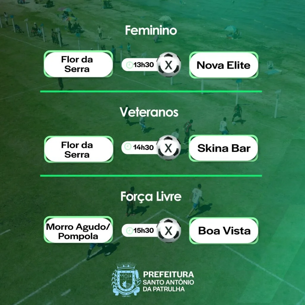 Em seguida, às 14h30, tem a decisão da categoria Veteranos, entre Flor da Serra e Skina Bar.