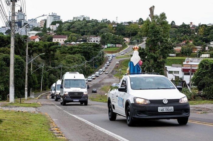 Foi realizada na manhã deste sábado (13) a 1ª Romaria das Vans e Micro-ônibus ao Santuário de Nossa Senhora de Caravaggio, em Farroupilha, marcando o início das festividades da 145ª Romaria de Nossa Senhora de Caravaggio.