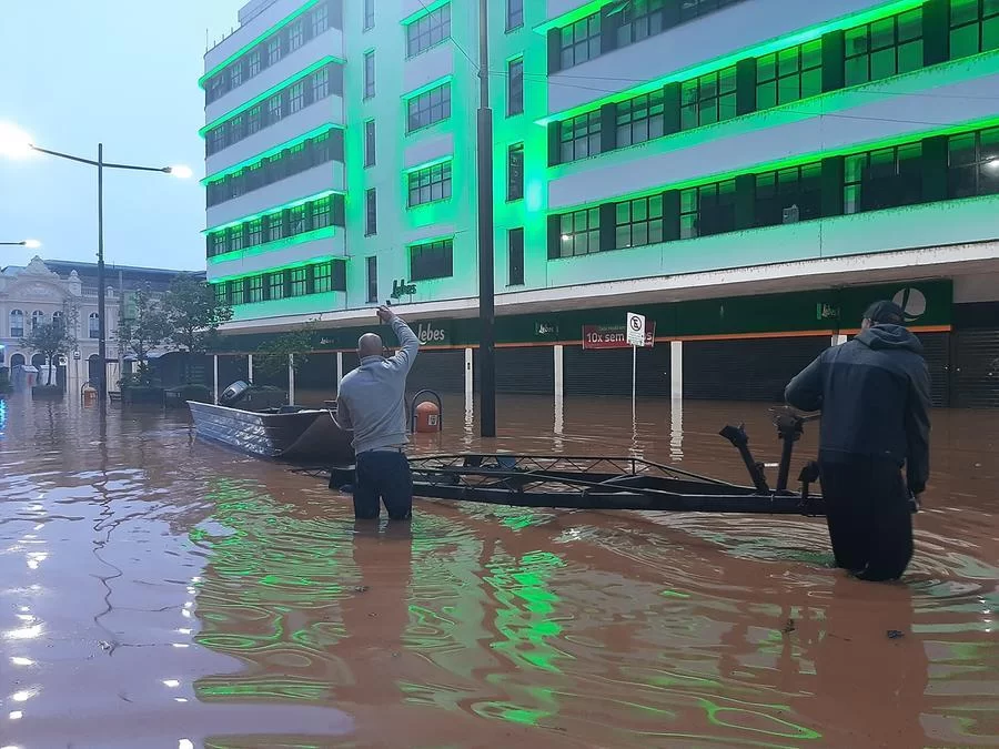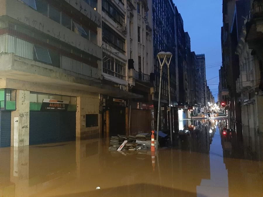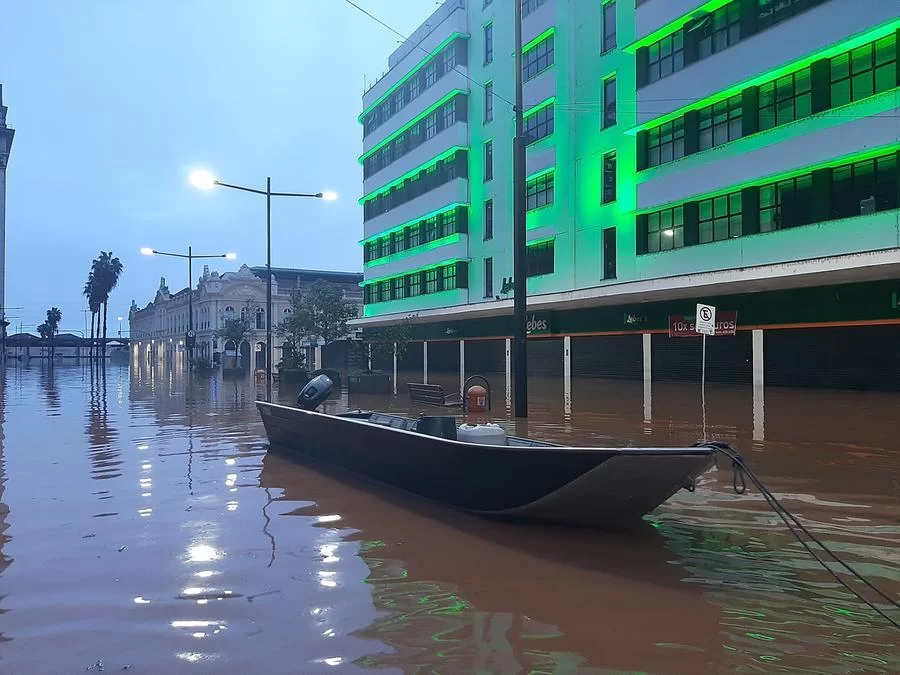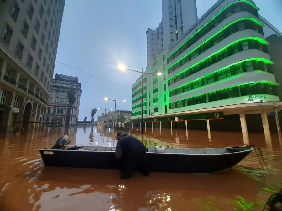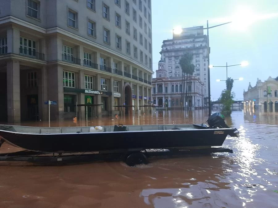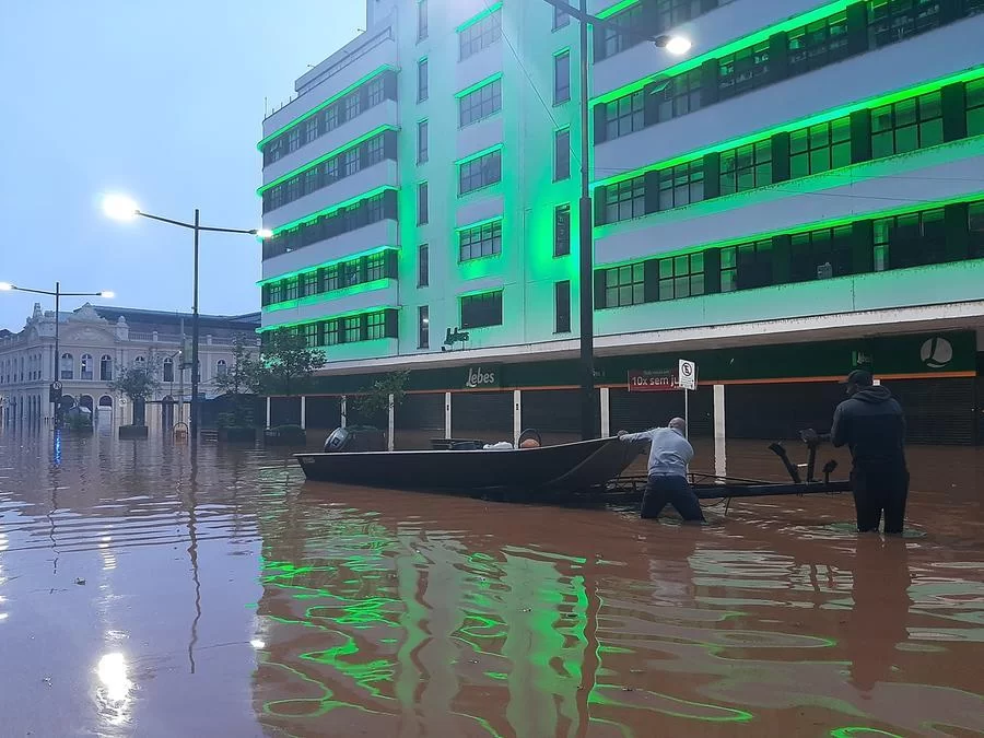 No Centro Histórico, o único meio de transporte possível de usar nas avenidas Borges de Medeiros e Júlio de Castilhos é o barco, assim como o ocorrido na enchente de 1941.