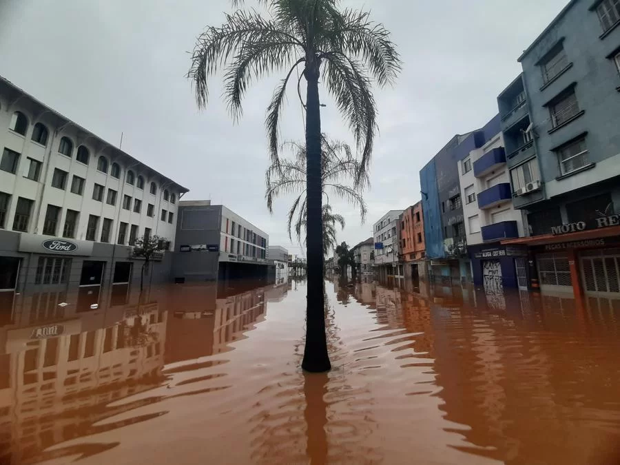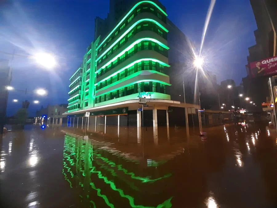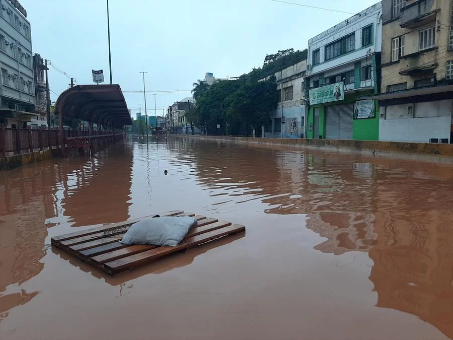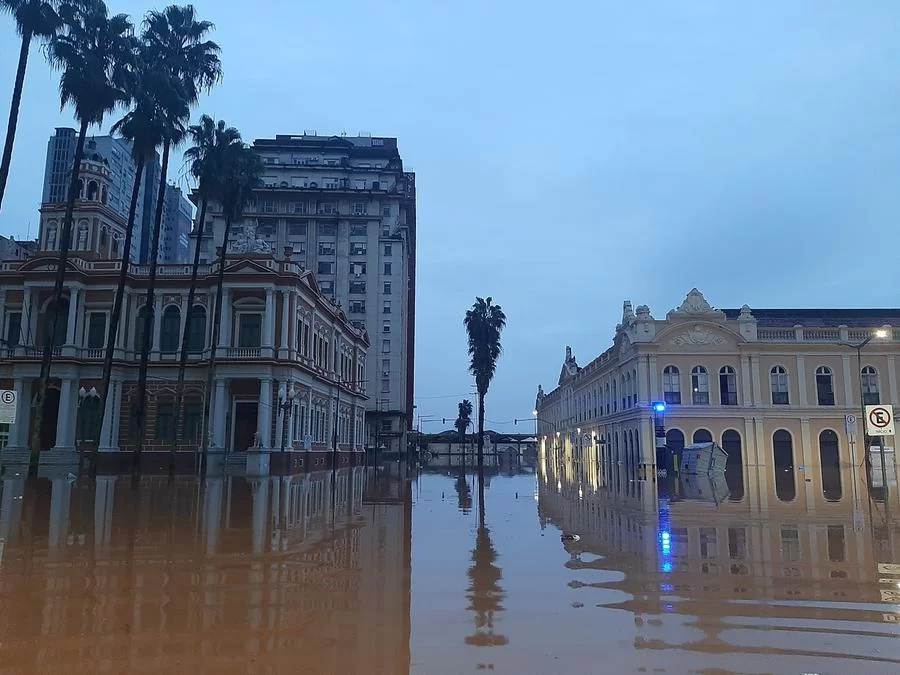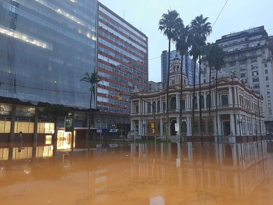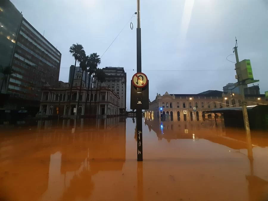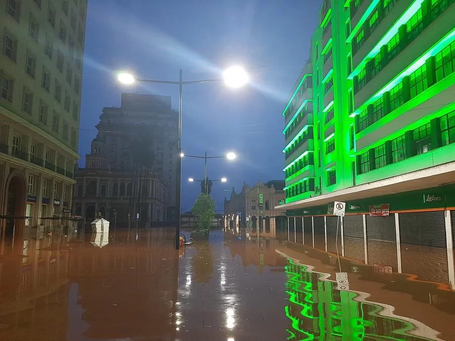 No Centro Histórico, o único meio de transporte possível de usar nas avenidas Borges de Medeiros e Júlio de Castilhos é o barco, assim como o ocorrido na enchente de 1941.