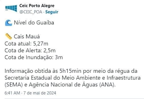 O nível dá a dimensão do problema enfrentado por Porto Alegre, que ainda segue lidando com a enchente que começou entre e quinta e sexta-feira da semana passada.