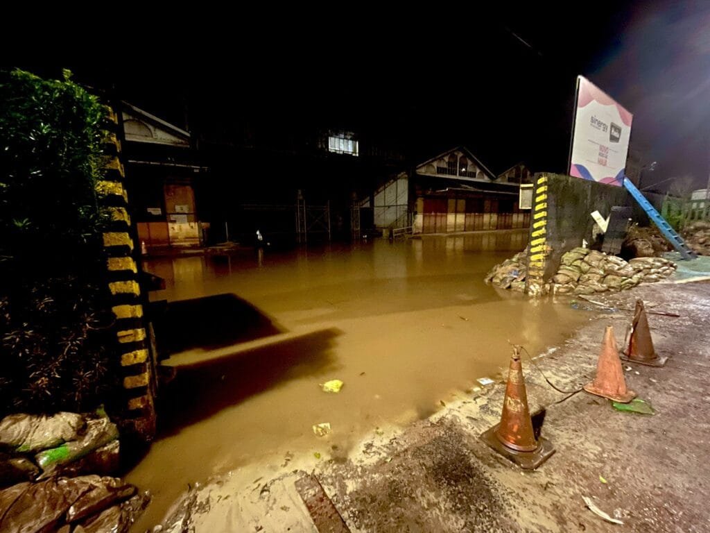 Água passa por baixo das bags e também reflui pelo sistema de esgoto.@correio_dopovo pic.twitter.com/XKbfmqch09