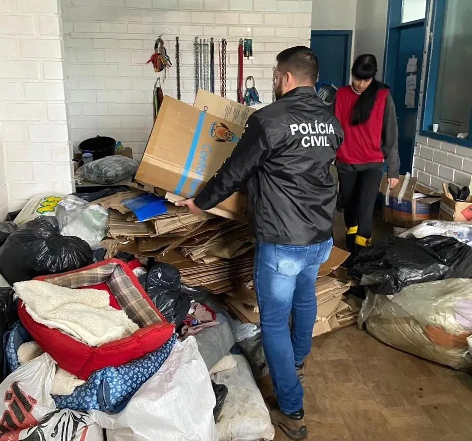 Policiais civis das delegacias de Osório e Capivari do Sul realizam campanha de arrecadação de doações e empregam esforços para apoiar os abrigos de animais domésticos no litoral norte afetados pelas catástrofes climáticas ocorridas no estado.
