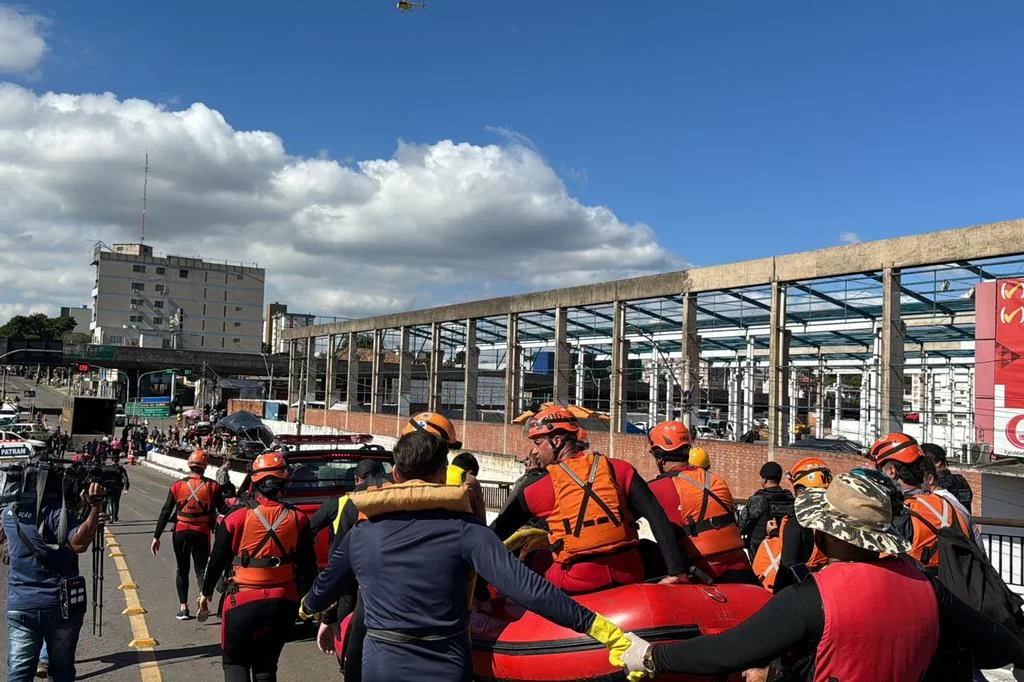 Para colocá-lo deitado dentro da embarcação, 11 socorristas atuaram diretamente.