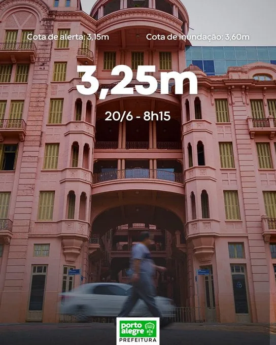 Contudo, na manhã desta quinta-feira (20), a prefeitura de Porto Alegre se manifestou nas redes sociais dizendo que o Guaíba não ultrapassará a cota de inundação, de 3,60m.
