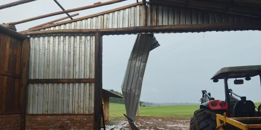 O evento climático causou o destelhamento de dois pavilhões na propriedade Cerbaro. “Foram feitas medições no local. São aproximadamente 400 m² de telhado e agora faremos um levantamento dos custos do prejuízo”, conta a engenheira do município de Casca, Alessandra Possa Pereto.