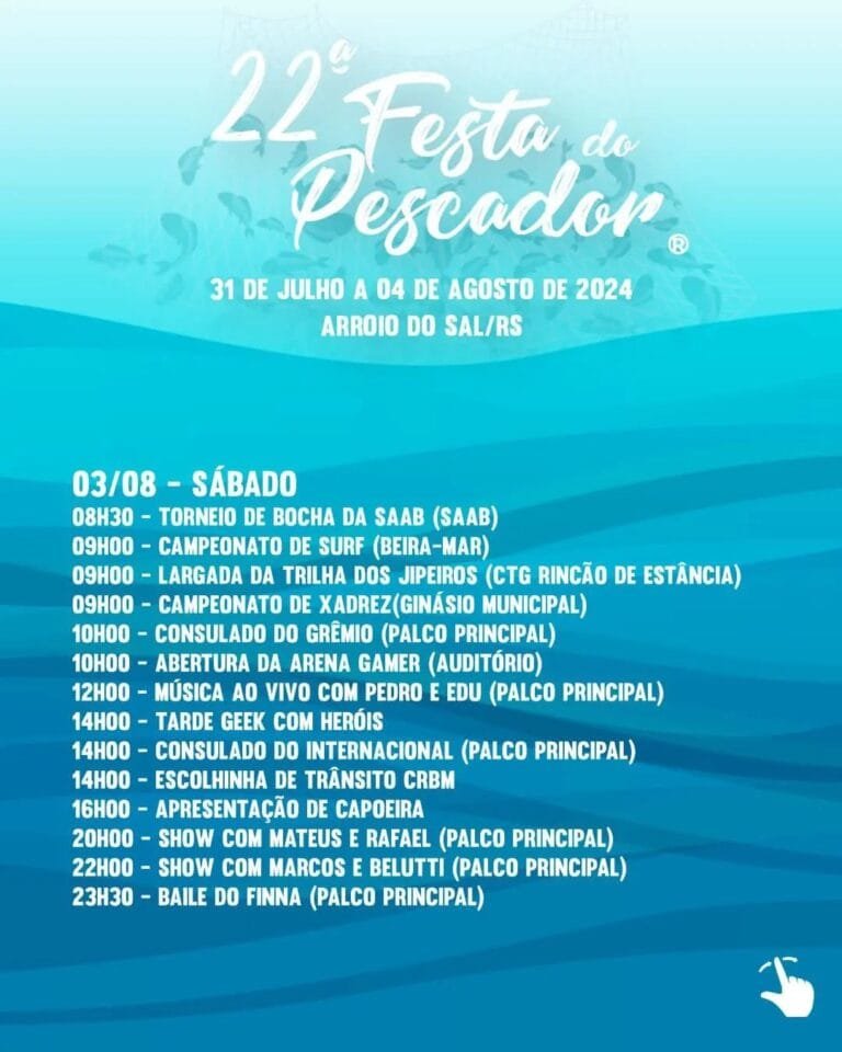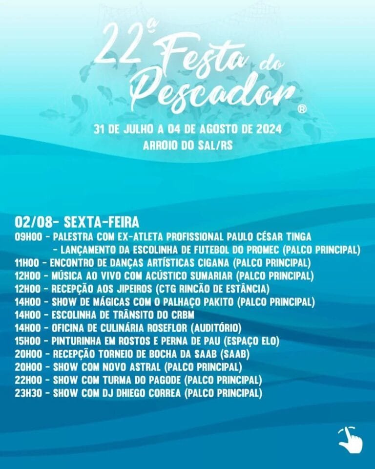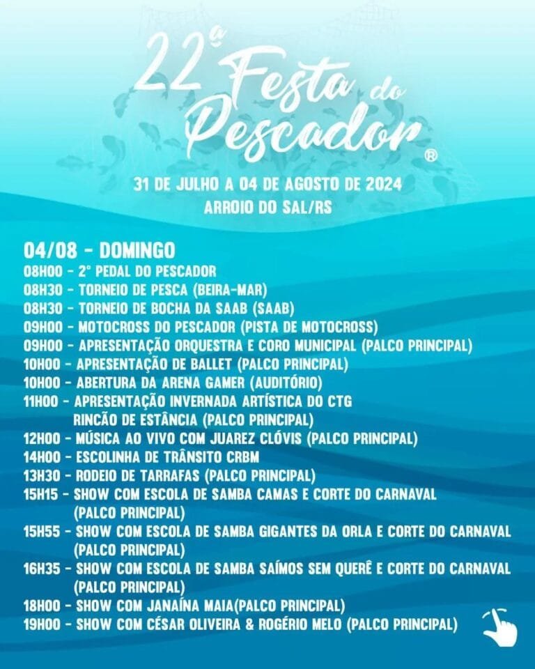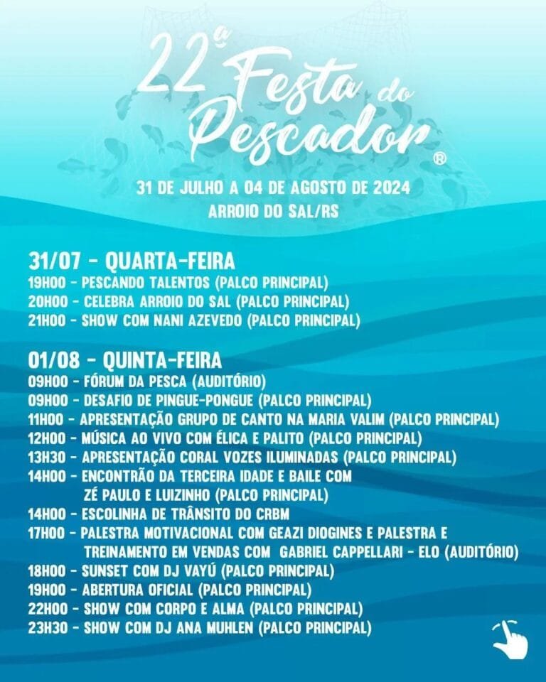 Entre 31 de julho e 4 de agosto, ocorrerá em Arroio do Sal a 22ª edição da Festa do Pescador.
