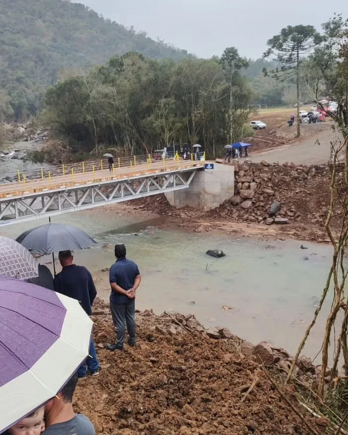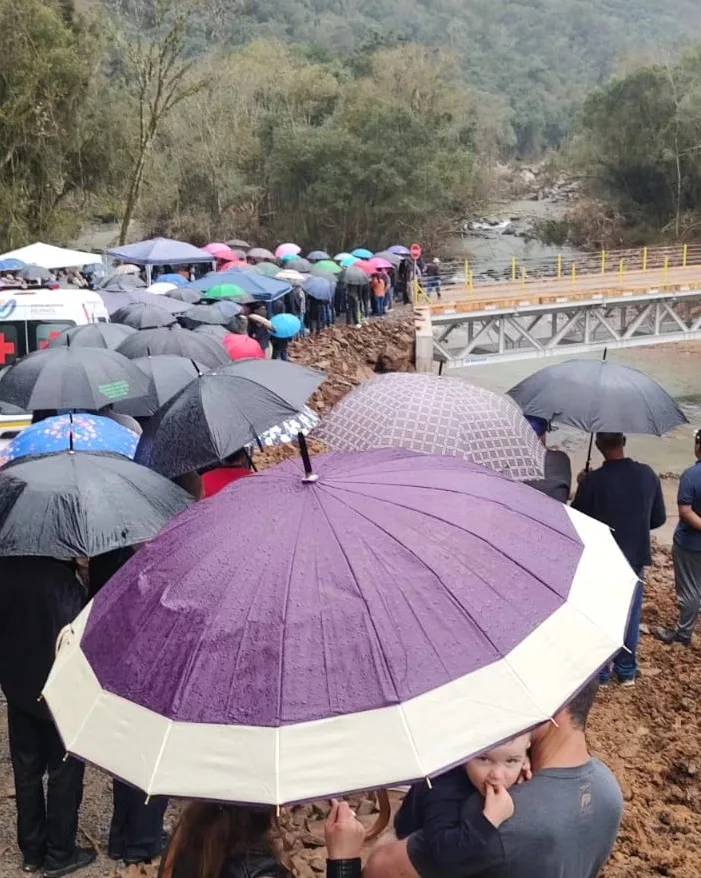 A estrutura é resultado de uma mobilização comunitária, que teve início após a antiga ponte, na ERS-441, ser levada pelas águas do Arroio Não Sabia na enchente do dia 1º de maio.