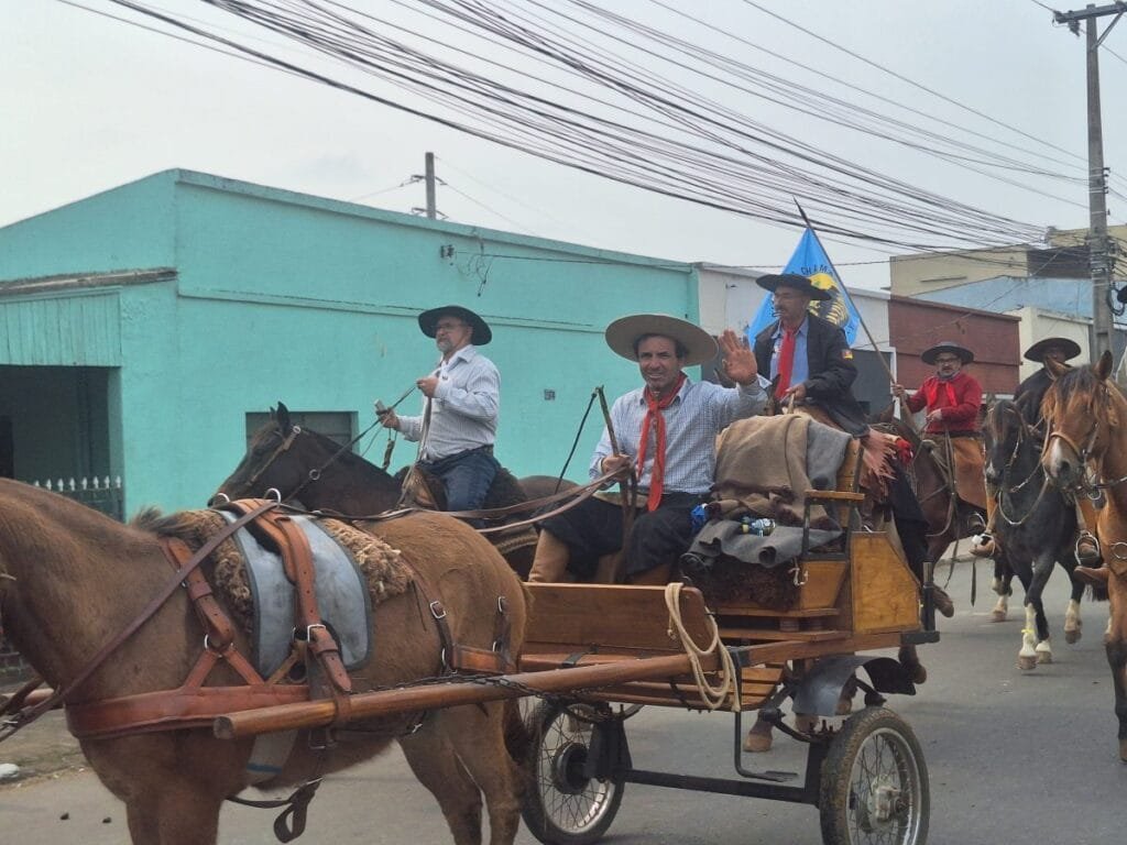 À medida que os cavaleiros avançavam pelas ruas, os moradores de Alegrete, conhecidos por seu profundo respeito e amor pela tradição gaúcha, saíam de suas casas e se posicionavam nas calçadas para saudar os participantes.