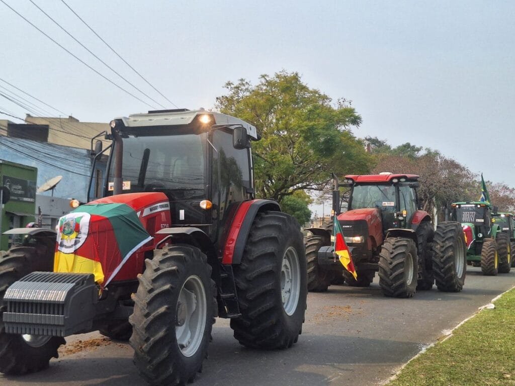 A Cavalgada culminou com uma demonstração de força e união: tratores do movimento SOS Agro rugiram pelas ruas, carregando as bandeiras do Rio Grande do Sul e do Brasil, simbolizando a importância e a vitalidade do setor agropecuário para a cultura e economia da região.