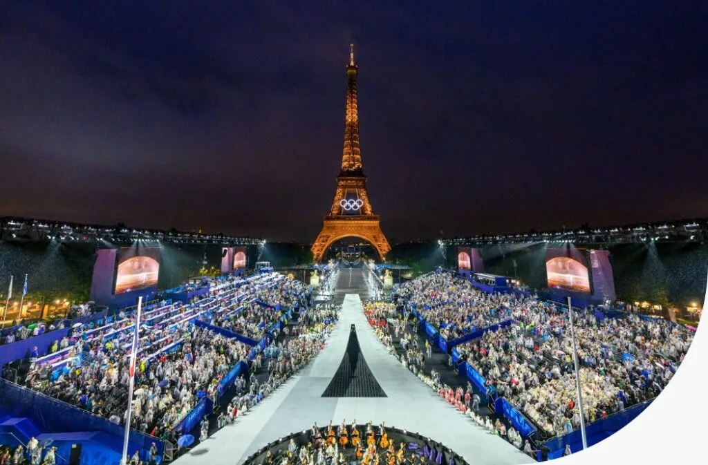 Enquanto aguardava as aparições do rapper americano Snoop Dogg e do ator Tom Cruise em homenagem a Los Angeles-2028, o Stade de France foi palco de uma sequência avassaladora: uma distopia futurística em que “o viajante dourado”, interpretado pelo ‘breakdancer’ francês Arthur Cadre desceu dos céus e redescobriu as Olimpíadas há muito desaparecidas, assim como fez o Barão Pierre de Coubertin no século 19.