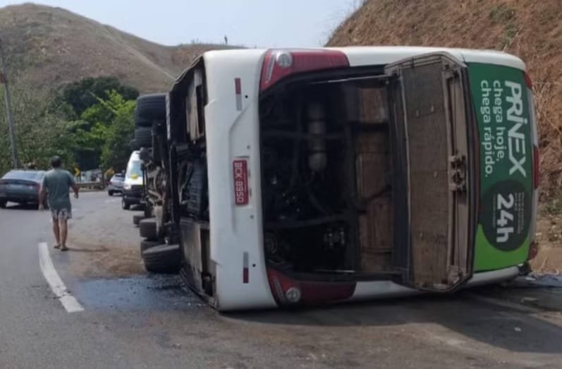 Um ônibus de turismo que levava o time de futebol americano Coritiba Crocodiles tombou na Serra das Araras, altura de Piraí, no sul do Rio de Janeiro, na manhã deste sábado (21).