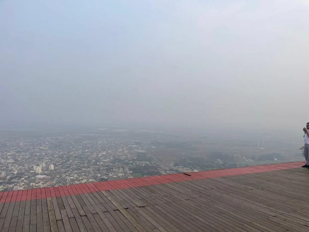 Na fotografia, o que deveria ser uma visão clara e deslumbrante do litoral está ofuscado pela fumaça que tomou conta do Estado.