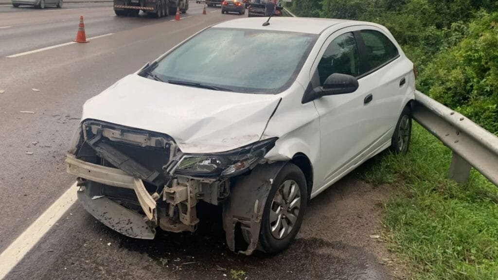 Um acidente envolvendo dois carros no km 88 da Freeway, sentido Capital-Litoral, deixou duas pessoas feridas na manhã desta terça-feira (1º).