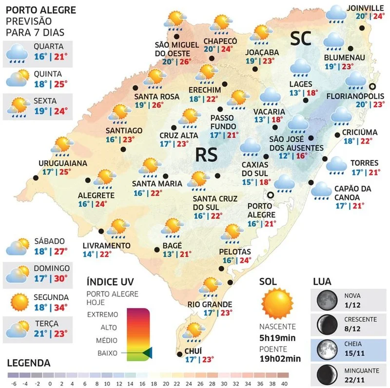 Confira a temperatura em algumas cidades do RS e de Santa Catarina