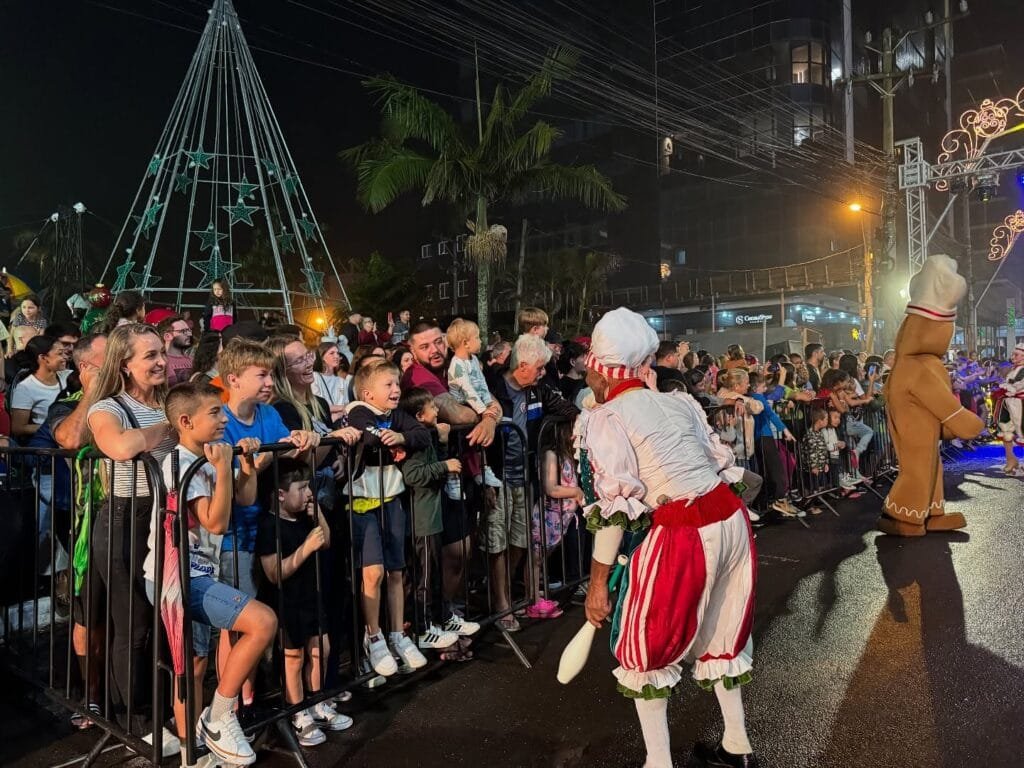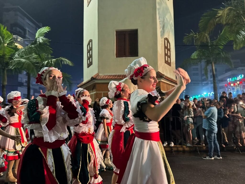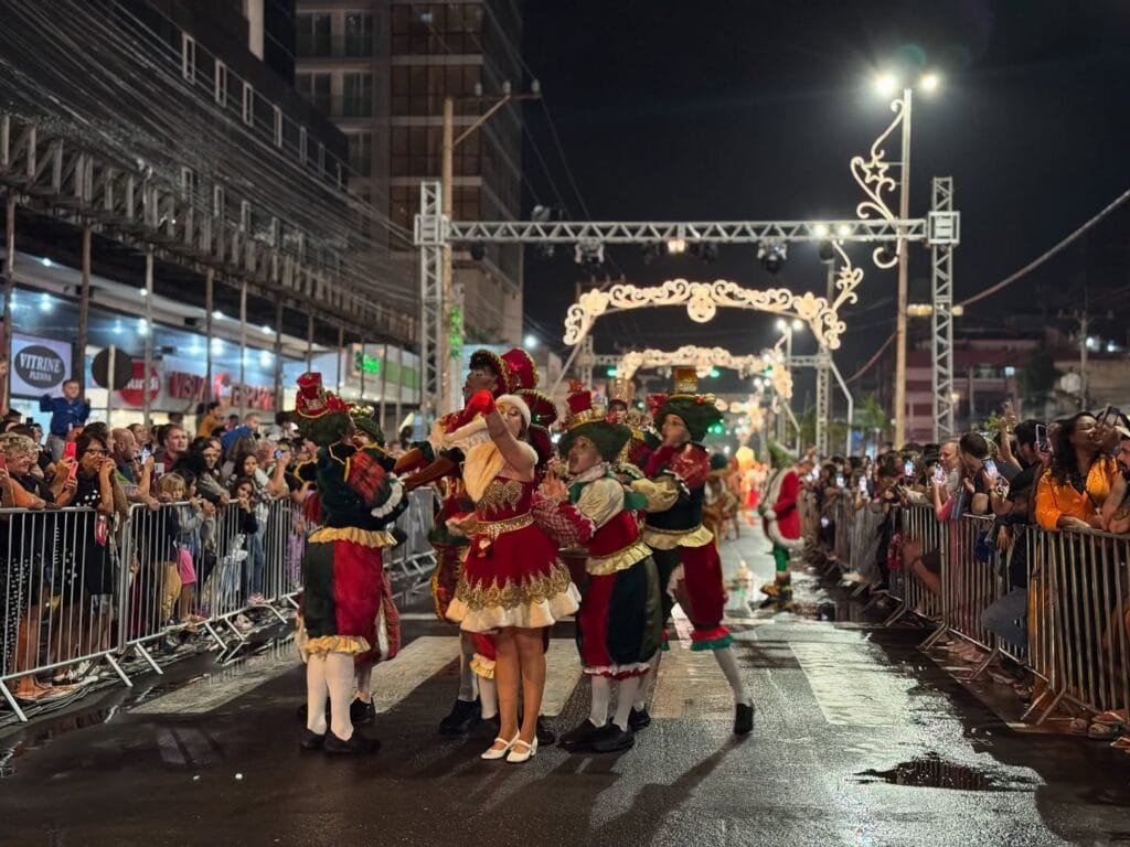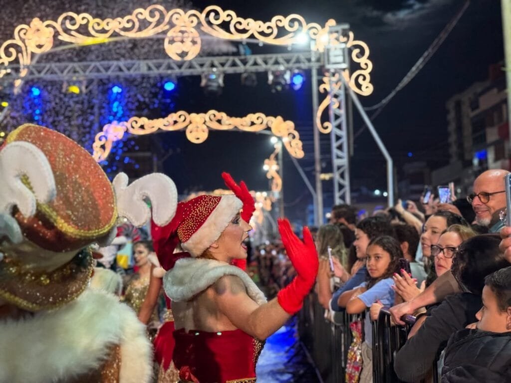 O desfile com mais de 130 artistas em cena, recheado de momentos especiais, exibiu ao público, cores, músicas e emoção, enaltecendo o espírito natalino com muita alegria, celebração e encantamento.