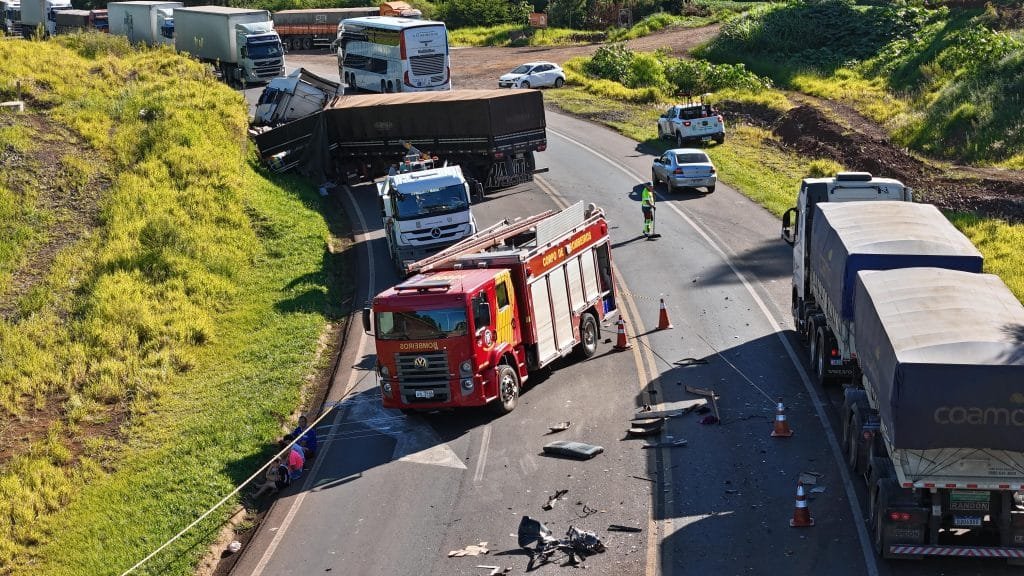 De acordo com informações, uma segunda carreta também teria se envolvido no acidente.