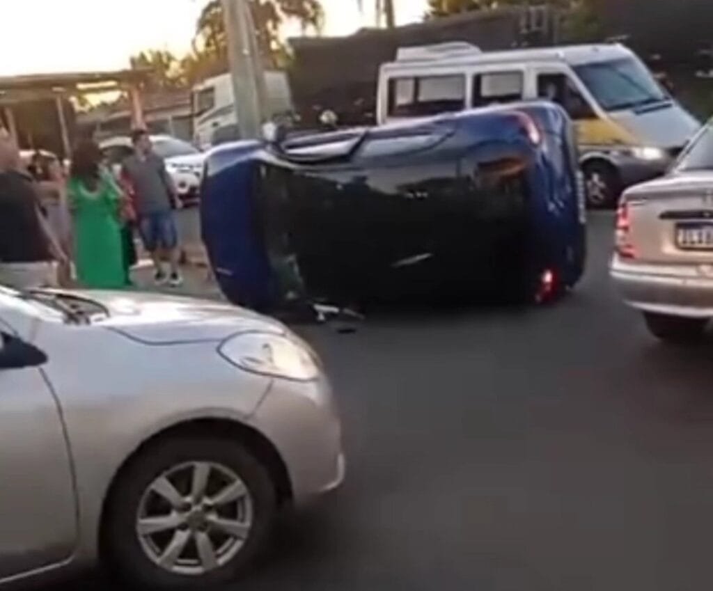 A condutora capotou após ser atingido por outro veículo, e perder o controle da direção, causando interrupção parcial no tráfego.
