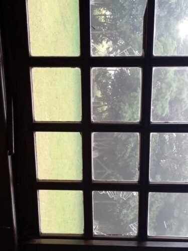 As imagens mostram um homem usando capuz se aproximando da fachada do estabelecimento e, em seguida, quebrando um dos vidros.