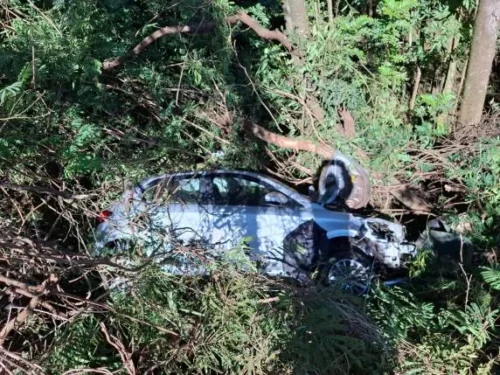 O automóvel Onix também saiu da pista, parando em meio a árvores às margens da rodovia.