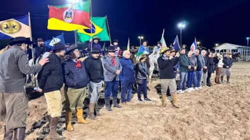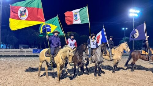 Na sequência, as atenções se voltaram para a cancha de laço, onde os cavalarianos representantes de cada piquete ingressaram de forma organizada, com as bandeiras, numa celebração e reafirmando a importância do movimento tradicionalista na preservação da cultura local.