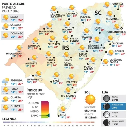 A tarde será menos quente que a desta quinta, 2, em boa parte do território gaúcho.