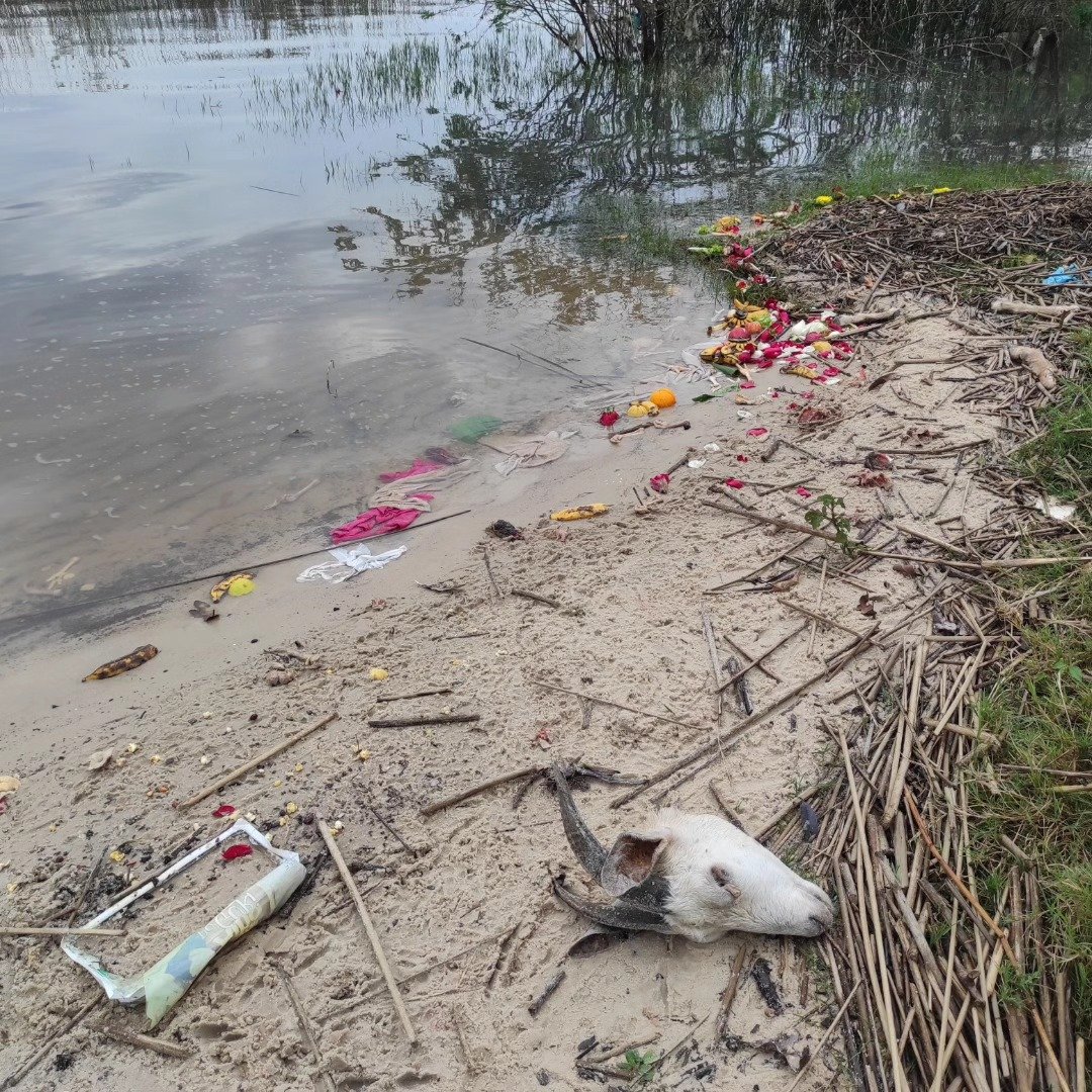 O local, popularmente chamado de “puxada d’água”, amanheceu com grande acúmulo de lixo e materiais utilizados em oferendas religiosas, incluindo cabeças de carneiros, e outros objetos.