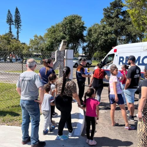 Houve a evacuação da unidade e de parte da comunidade vizinha do bairro Vila Petrobrás de Osório, para treinar o uso da rota de fuga planejada.