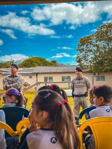 A visita proporcionou aos estudantes uma experiência educativa, aproximando a comunidade escolar do trabalho realizado pela Brigada Militar e reforçando a importância do vínculo entre segurança pública e sociedade.