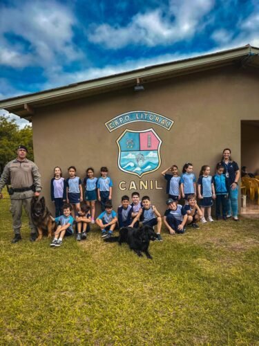 Alunos da escola Adventista de Osório visitaram o Canil Regional do CRPO Litoral para conhecer de perto o trabalho desenvolvido pela Brigada Militar com os cães policiais.