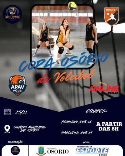 Sáb – 15/11 – 9h: Copa Osório de Voleibol (Ginásio Municipal Rutílio Kestering)