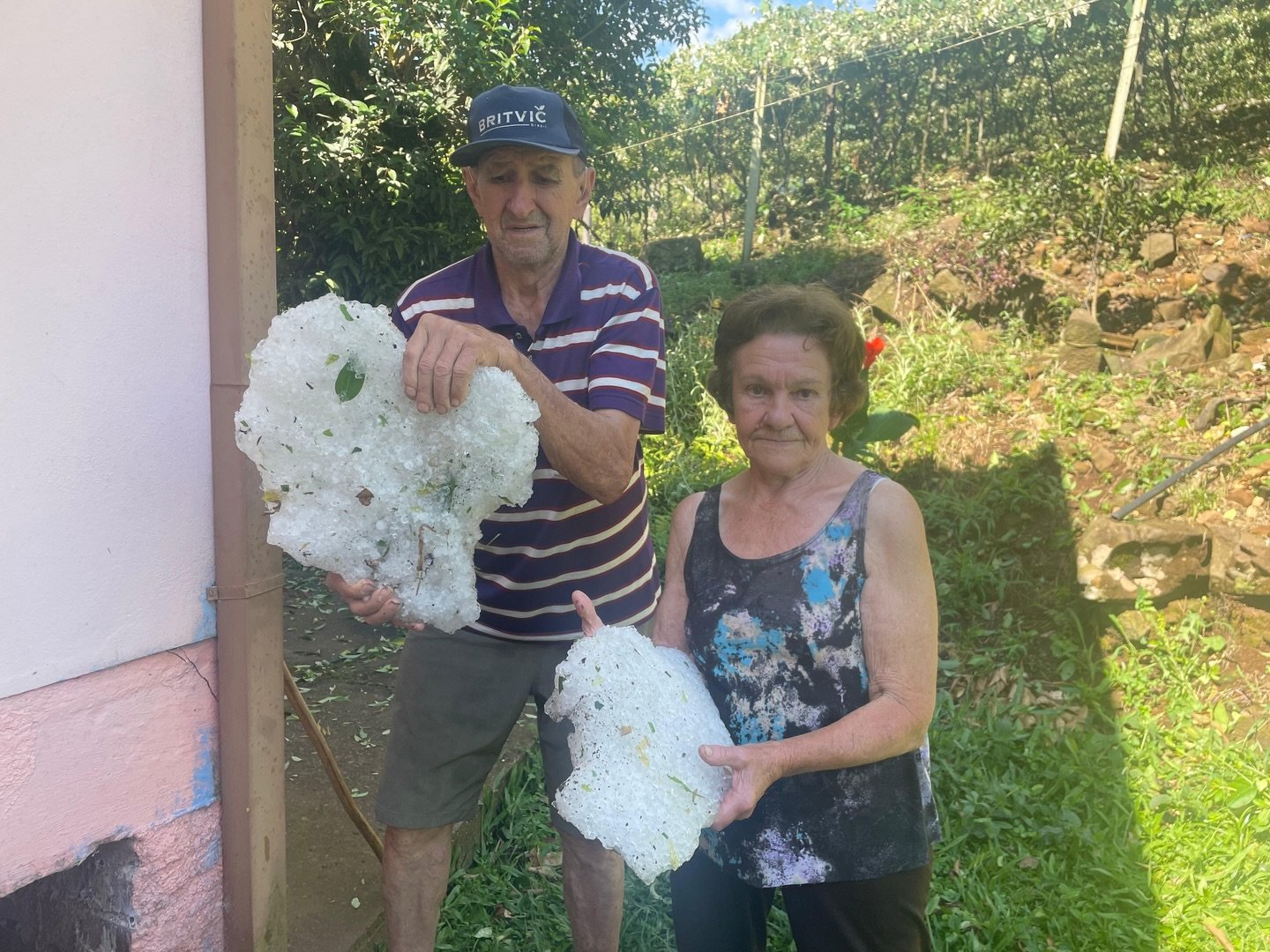 Em Forqueta Baixa, o cenário é semelhante. Na propriedade de Alécio Steinmetz, ainda havia muito granizo acumulado nesta manhã.