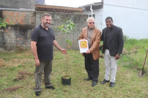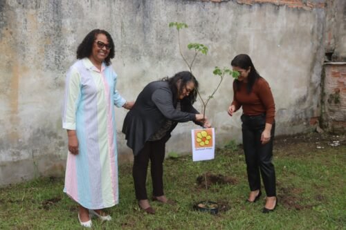 Autoridades municipais participaram da atividade que homenageou antigos Conselheiros Tutelares, a Débora Pires e o Jorge Adi que realizam no pátio do local o plantio de um Ipê e um Araçá, respectivamente.