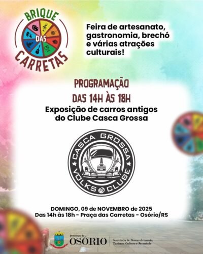 O evento que é realizado na Praça das Carretas, em Osório, tem mais de 100 bancas inscritas reunindo artesãos, brechós e gastronomia.