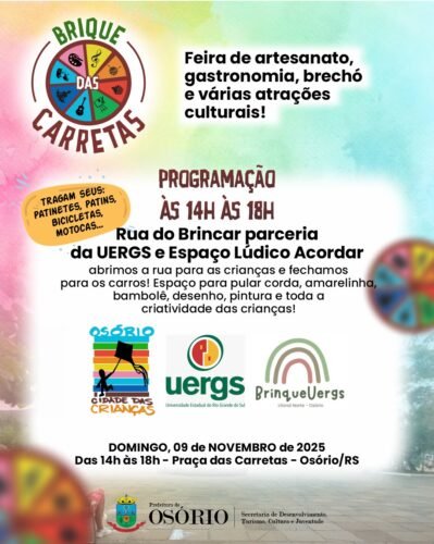 🛍️🎭Rua do Brincar, apresentação de teatro e show musical serão algumas das atrações do Brique das Carretas no próximo domingo (9/11).