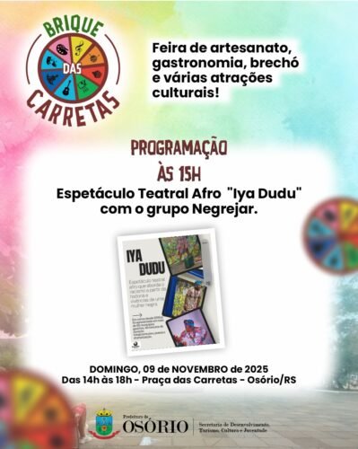 No mês da Consciência Negra, a primeira atração será às 15h, com a apresentação de teatro “Iya Dudu”, do grupo Negrejar.
