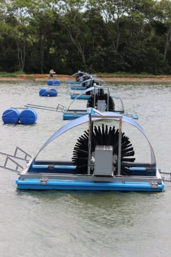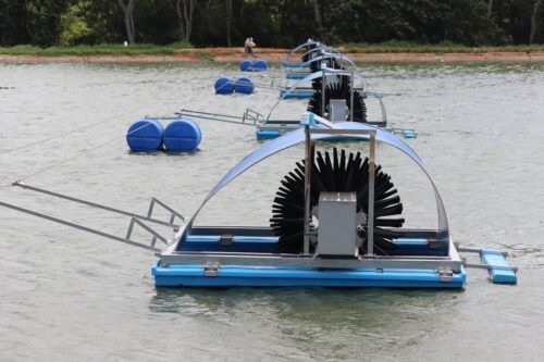 Já foram instalados 39 aeradores do tipo cachoeira, que operam em baixa rotação para incorporar oxigênio à água, flutuando na superfície.