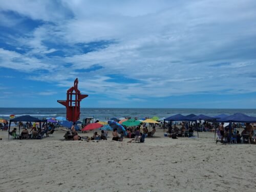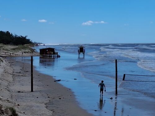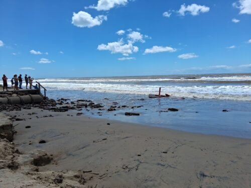 Os quiosques localizados na beira da praia não foram atingidos, assim como as passarelas, até o momento.