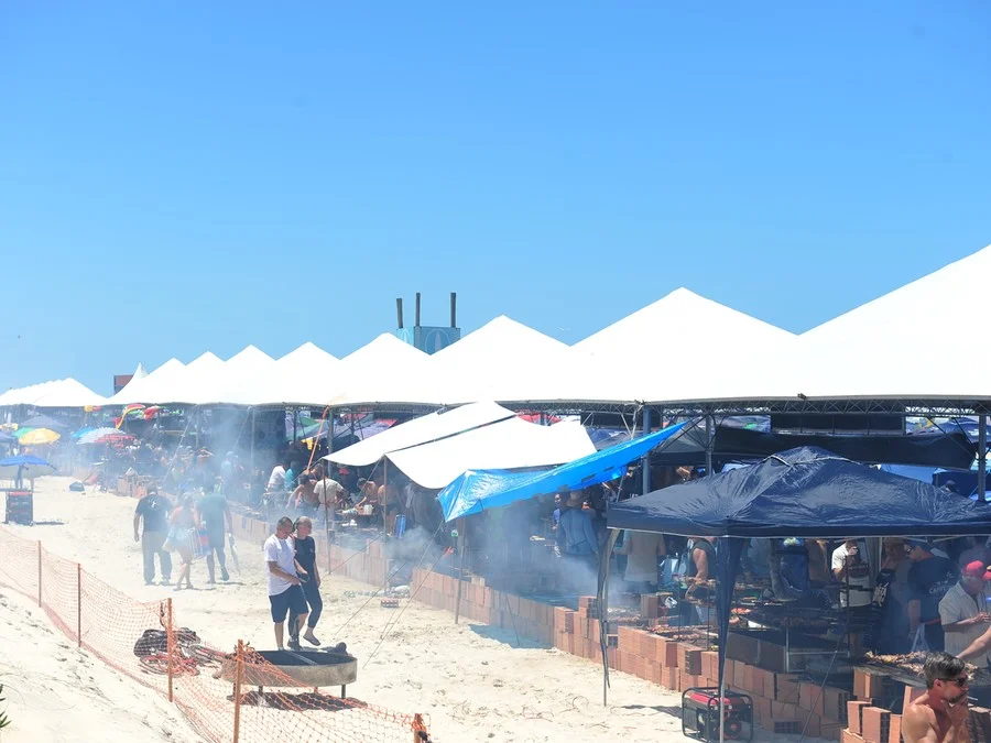 Em 2026, foram mais de 1.800 assadores distribuídos ao longo de 4,5 quilômetros de praia, com estimativa de um público de cerca de 180 mil pessoas.