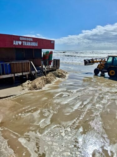 A Prefeitura de Tramandaí segue atenta e atuando de forma rápida para minimizar os impactos da ressaca e proteger a estrutura da nossa orla. 💙
