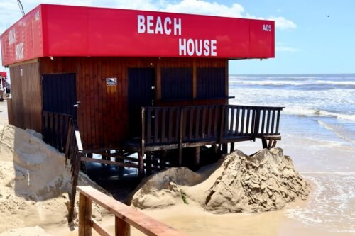 ⚠️ Devido à forte ressaca que atingiu a orla de Tramandaí, alguns quiosques tiveram suas estruturas impactadas pela força do mar.