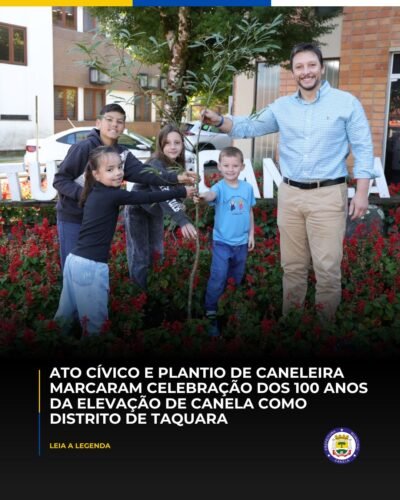No início desta semana, Canela comemorou os 100 anos da elevação à condição de 6º Distrito de Taquara com um ato cívico em frente ao Paço Municipal.