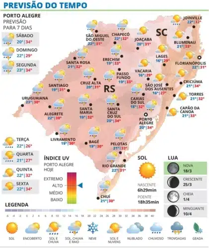 O tempo começa a mudar neste sábado, 21, em grande parte do Rio Grande do Sul.