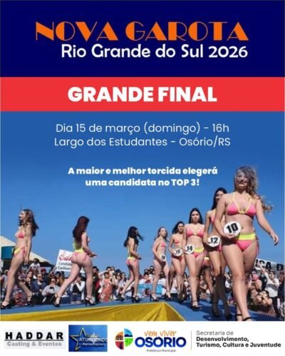 🏆👑 🌟💃 Nesta finaleira da estação mais quente do ano, o município de Osório vai receber neste domingo, (15/03), a grande final do concurso Nova Garota Rio Grande do Sul 2026.