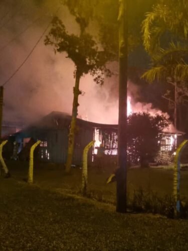 Apesar da ação ágil da equipe, o fogo já havia se espalhado, e a residência acabou sendo totalmente consumida pelas chamas.